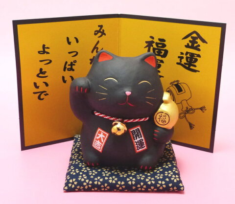 開催中のポイントアップキャンペーン 〇商品概要:各種お祝い(誕生日祝い、結婚祝い、記念日、引越し祝い、新築祝い、開店祝い、内祝い、父の日、母の日、こどもの日、敬老の日、)、プレゼント、贈り物、ギフト、お土産(外国人、海外)、プチギフト クリスマスのプレゼント、お正月の縁起物 に最適な品を揃えています!金運貯金箱 MONEY来!ねこ(黒)【招き猫 置物】 台と屏風がセットになってお得↑ ご自分用にプレゼントにどうぞ☆