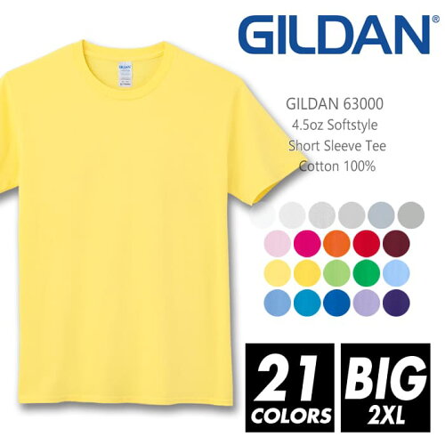 Tシャツ 無地 メンズ ビッグサイズ 【メール便可 1着290円】gildan(ギルダン) 4.5オンス 63000 2xl コットンTシャツ 半袖夏 夏服 半袖 厚手 スポーツ ダンス カラー 運動会 文化祭 イベント お揃い ストリート スタッフ ルームウエア 部屋着